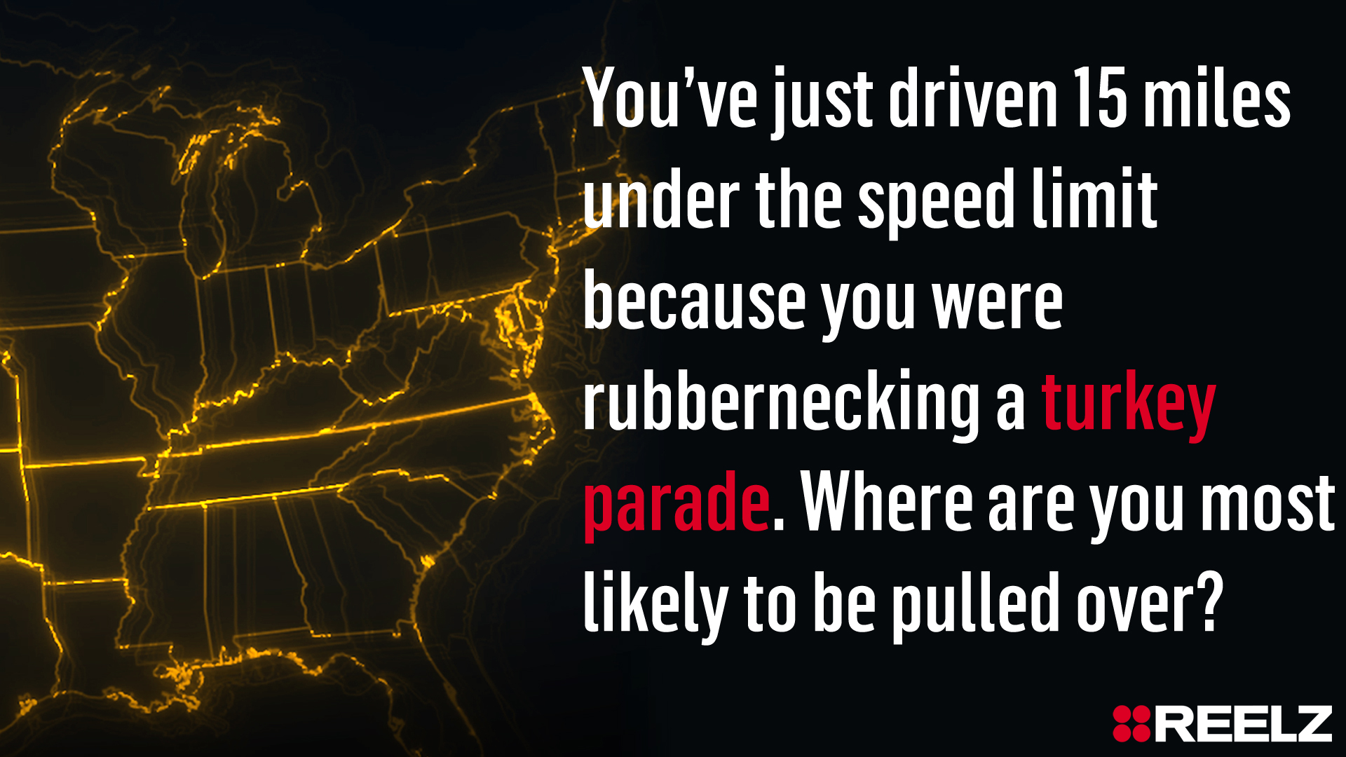 You’ve just driven 15 miles under the speed limit because you were rubbernecking a turkey parade. Where are you most likely to be pulled over?
